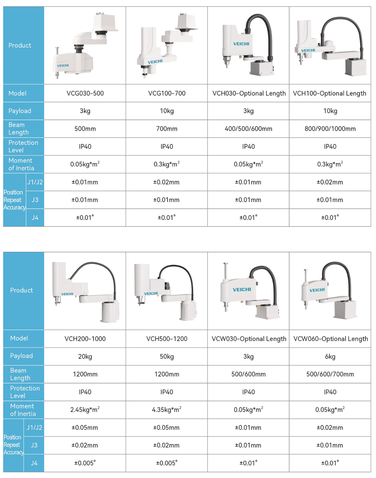 VCSW060-500/600/700 Series 6kg 500/600/700mm Scara Robot