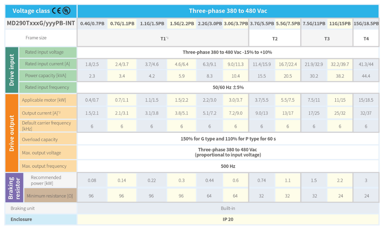 Open loop, three phase, 400 V, 0.4-500 kW; 200 VAC, 0.4-75 kW